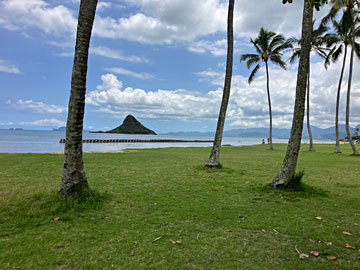沖に、中国の帽子の形をした島が見えます。チャイナマンズ・ハットと呼ばれているのだそう