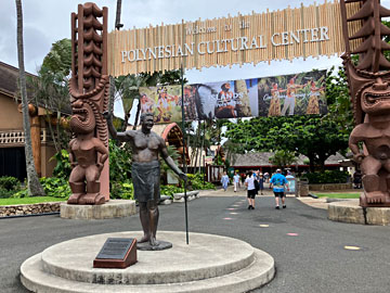 オアフ島北端を通って東側の「ポリネシアンカルチャーセンター」に来ました。2日前に夕食のビュッフェとナイトショー付きのプランをWEB予約していたのです。