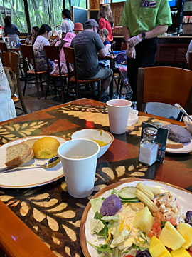 ワイメア渓谷、コアパンケーキハウス(カマカナアリィ)でカルビなどをテイクアウト。(午後雨)