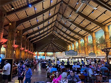 夕食は、広いゲートウェイビュッフェで食べ放題。ポリネシアンカルチャーセンターは、宗教関係の非営利団体が運営しているため、アルコールの提供はありません。