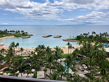 土曜日の夜に緑のホヌで成田を離陸、同日朝8時過ぎにホノルル空港着。入国手続き、レンタカーを借りて、アウラニに直行し、10:15頃着きました。部屋には入れなかったので(チェックインは16時)、荷物を預けて(荷物をレンタカーのトランクに入れていると、ショッピングモールで駐車している間に盗まれることがあるらしい)、カマカナアリィのフードランドファームで食材入手と買い物。買い物中、14時頃に「部屋の用意が出来た」とアプリに部屋番号の連絡がありました。