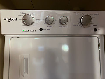 キッチン近くのとびらの中にある乾燥機、洗濯機はその下にあります。電気だと思いますが、短時間でふんわりと乾かせて、とても楽でした。