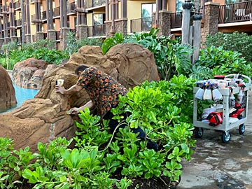 朝のアウラニを散歩。出来てから12年近く(2011/08/29開業)経っており、補修しているようです。岩を塗りなおしていました。