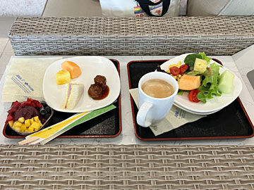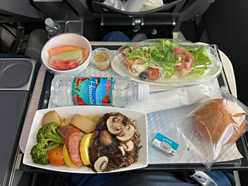 機内食は、先日レストラン・フライングホヌで頂いたのと同じメニュー