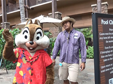 アウラニリゾートにはディズニーキャラクターが出現します。モアナ。写真右端はマックス。