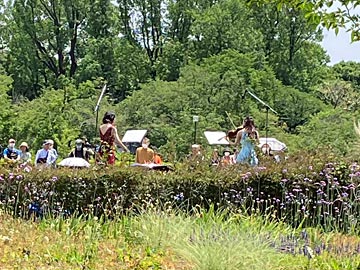 芝生広場に戻ってきました。「バラ園コンサート」が開催されていました(11時~、14時~)。コンサートが終わったあと、持ってきた冷やし中華のランチ。