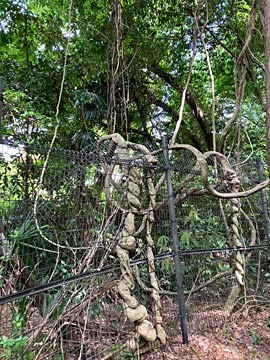 ←フェンスにツルがからまったまま太くなっていて、インディジョーンズ(?)状態。