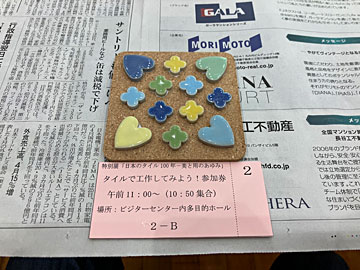 ワークショップ「タイルで工作してみよう!」11:00~の参加券をもらいました。