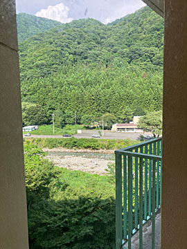 玉原高原は、関越トンネルの入り口近くで、高速が渋滞なしで2時間強。結構遠いので、近くのお安い宿を探しました。玉原高原にも、犬も泊まれるペンションみたいなのはあったのですが、近くの湯檜曽(ゆびそ)温泉に、いつもの伊東園ホテルズ系列の「ホテル湯の陣」の洋室ツインが1室だけ空いていたので、一泊させて頂きました。食べ放題、飲み放題、プールも露天風呂も、カラオケもあって良かった。
