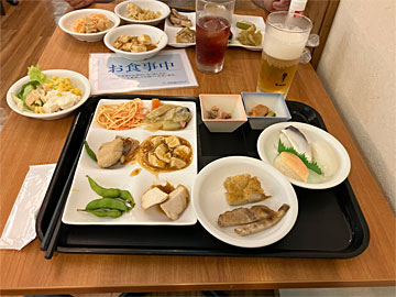 18:30~バイキングの夕食。伊東園は70分間食べ放題、アルコールも飲み放題ですが、このホテルは食べ物も飲み物もそんなに行列にならず、平和な感じでした。