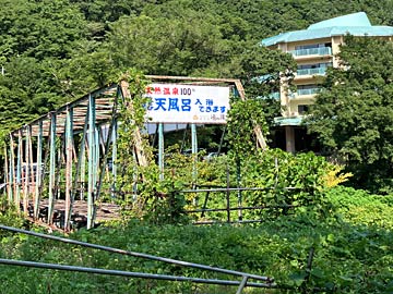 11時がチェックアウト時間ですが、9時くらいに おいとましました。ホテルは国道291から川を渡って入るのですが、こちらは昔使われていた橋。今は通行禁止です。