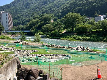 道の駅 みなかみ 水紀行館の横に流れている「利根川」。すごい水量でした。来年6月完成予定で、清流公園整備中。ラフティング等、アウトドアでの河川利用もできるようになるようですが、この日は水量が多くて若干危険な感じ。