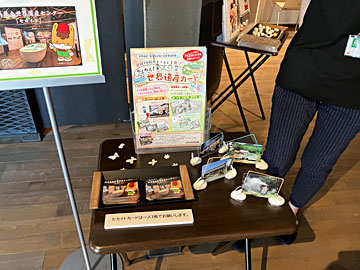 世界遺産カードを配っていました。スタンプもたくさんありました。世界遺産になった富岡製糸場の、複数の施設群を説明するビデオを見ました。