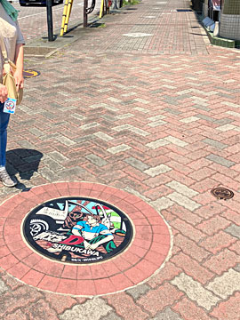 実物のカラーマンホールも建物の前にありました。