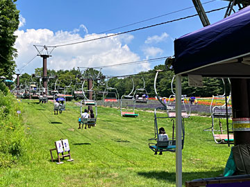 ここはスキー場、ペアリフトで上がります。(¥500/人)
