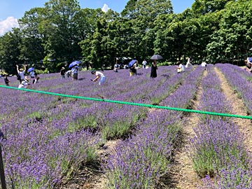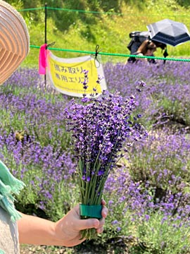 ラベンダー摘みに挑戦(¥1,000)。緑の枠(直径25mmくらい?)がいっぱいになるまで摘めます。