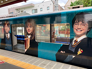 西武線の練馬駅で豊島園行きの電車を待ちましたが、ハリーポッターのラッピング電車が池袋から来ました。西武線の豊島園駅はハリーポッターの駅風になっていました。