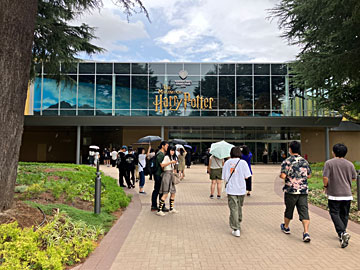 「ワーナーブラザーズ スタジオツアー東京」の建物。神秘的な色合いをしています。