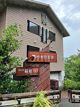小雨の中、小涌谷駅から徒歩8分、四季倶楽部の「ヴィラ箱根80」に着きました。2時半くらいに(休憩時間だったそうですが)荷物を預けました。