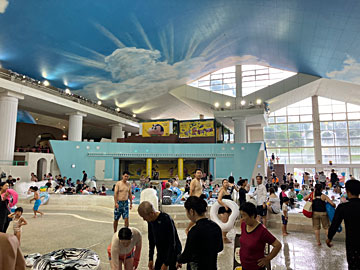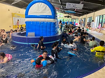 今年7月に新しく出来た「流れるプール」は、イモ洗い状態