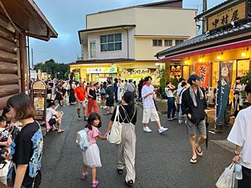 ユネッサンからバスと登山鉄道を乗り継いで、強羅駅に来ました。この日は「強羅大文字焼祭り」開催日、夜店も出てにぎわっていました。