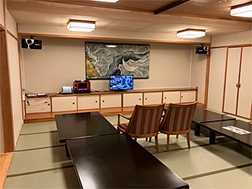 宿(伊東園ホテル熱海館)に戻ってきました。13:00からチェックイン(の手続き)が出来ますが、ルームキーがもらえるのは15:00からです。15:00から16:00までカラオケをお願いしました。1Fの広い和室でした。