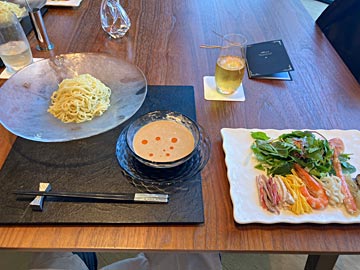 起雲閣直ぐ近くの中華屋さん「点心ダイニング 天天」でランチ。夕食がバイキングなので、たまごとトマト麺の単品にしました。