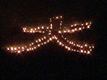 街灯の右にあるのが(工事現場とかでよく見る)丸い工事用照明。大文字焼きが始まる5分前に消灯し、しぼみました。