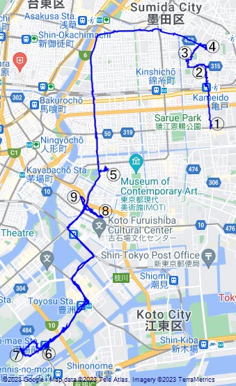 今回の謎解きには、城東コース、深川コース、エクストラコースの3つがあり、一日目の深川コースと城東コースの一部に行き、二日目に残りの場所とエクストラコースに行きました。土日には森下駅と日本科学未来館を往復する急行の都バスが一時間に2本ぐらいあり、行きは清澄庭園から市場前駅前まで、帰りは市場前駅前から門前仲町まで乗り、便利でした。