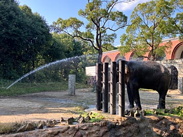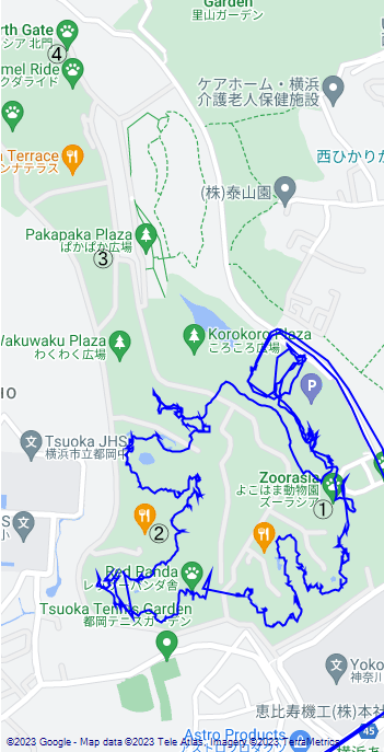 見学時間の目安は、正門からオージーヒルまで20~25分、そこからオカビ展示場まで20~25分、そこから北門まで15~20分、とのことでしたが、メガネクマまで見て、アマゾンセンターに戻り、トンネル、噴水口経由で帰ってきました。