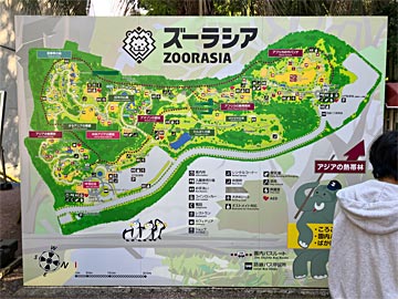 ズーラシア全図。敷地面積は45.3haだそうで、東京ディズニーランドとほぼ同じくらいの広さです。