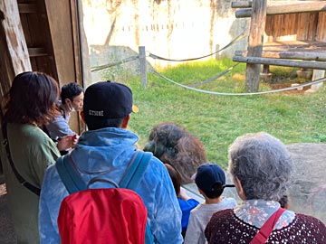 13:30頃に着きましたが、駐車場は収容台数2,200台だそうで、まだ2F建ての建物が一つ使われていない様子。園内は幼児連れの家族が多いようでした。雑木林の中にスノコのような木を張ったような感じの歩道とかもあり、飼育場自体も広めなので、自然に近い環境で、動物にもストレスが少ない感じがしました。