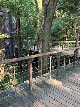 園内が林の中にあり、スノコのような木の歩道になっているところもありました