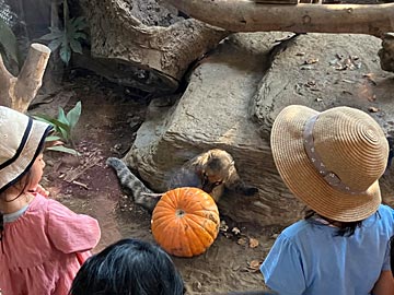 アカハナグマがハロウィーンのカボチャをもらっていました