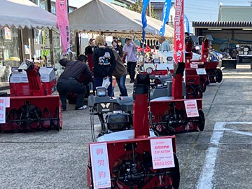 沿道で除雪車を販売していました。手前の小さいので55万円です。