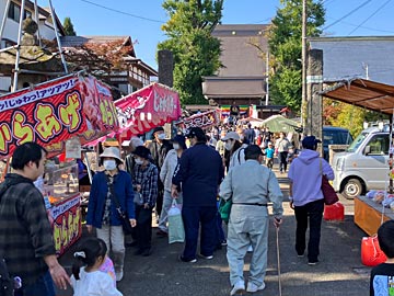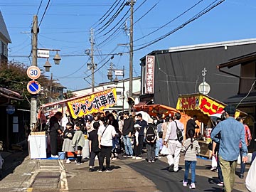 おたや(新井別院報恩講)。11/1~11/3の間、旧北国街道を交通規制して露天が出ています。右奥の池田屋は人気店のようです。