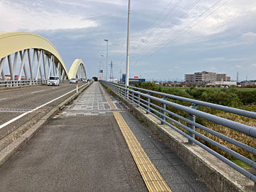 関川にかかる「謙信公大橋」でクエストは終了。この時はちょっと雨がパラつきました。