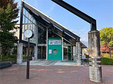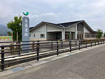 上越妙高駅西口駅前にある釜蓋遺跡公園。建物はガイダンス館