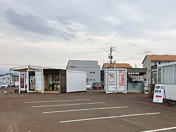 上越妙高駅の西口駅前広場にある、コンテナで作ったショッピングモール(フルサット)