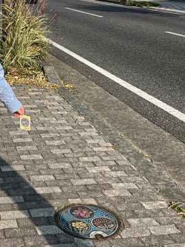 実物のカラーマンホールは、歩いて10分くらいの歩道にありました。