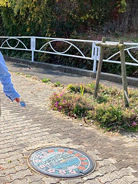 こちらも近くの通りの歩道にカラーマンホールがありました。