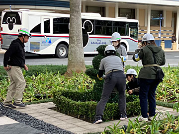 アンバサダーホテルの前にある植栽のドナルドダックは、クリスマス・イルミネーション取り外し中のようでした