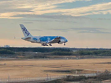 5Fの展望展示室で、A滑走路に離着陸する飛行機を見学