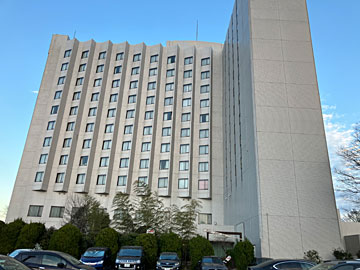 朝の湯楽城を見に行きました。元はデルタ航空の機内食工場と研修施設だったようです。