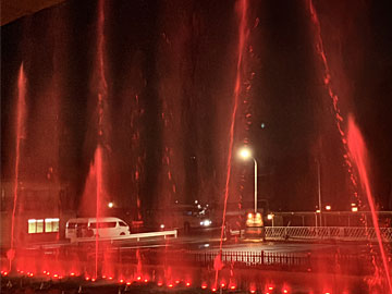 18:00からの噴水ショーを見学。浴衣で外に出たので寒くて、早々に引き上げ、岩盤浴で暖まりました。