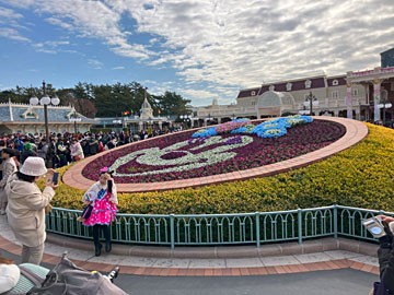 “ミニーのファンダーランド”開催中の東京ディズニーランド。エントランスの花壇はミニーマウスになっていました。