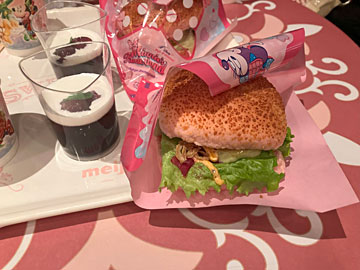 スペシャルセット(エビとアボカド、チーズクリーム、グレープゼリー、ソフトドリンク)¥1,270。テラス席から遠くにエレクトリカルパレードが見えました。