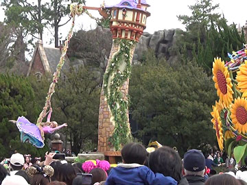 休止している「ピーターパン空の旅」の前で、遠目にパレード「ハーモニー・イン・カラー」を見ました。