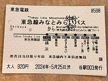 今回も(前回はこちら)、渋谷で一度下車して、東急線みなとみらいパスを購入。東横線の往復に、みなとみらい線の乗り放題が付いて¥920。