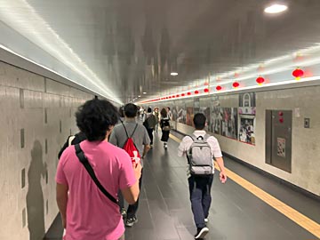 中華街東門近くから、元町・中華街駅まで、地下道を歩きます。元町と中華街の中間に駅があるので、どちらに行くにも結構歩きます。